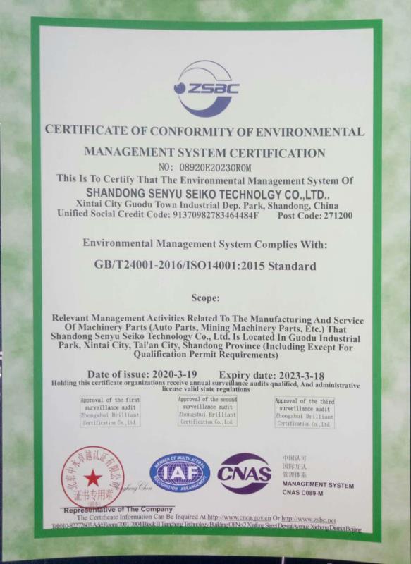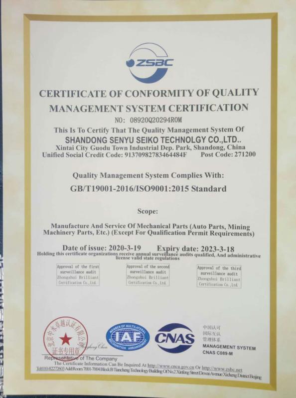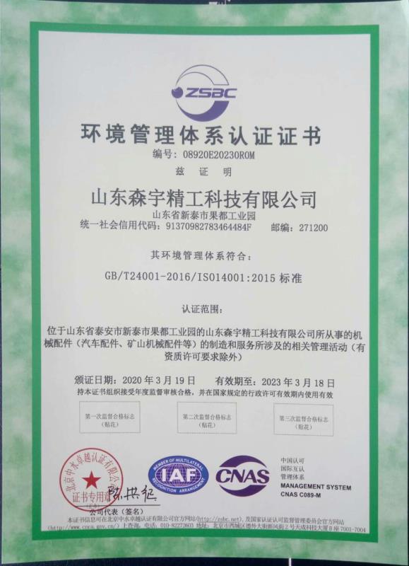 山東森宇精工科技有限公司成立于2005年,位于五岳獨(dú)尊的泰山腳下,經(jīng)濟(jì)發(fā)達(dá)、交通便利。是一家集科研、生產(chǎn)、銷售于一體的國(guó)家高新技術(shù)企業(yè),占地60000多平方米,建筑面積46000平方米,職工100余人,其中專業(yè)技術(shù)人員28名,碩士生6名,博士生2名。主要從事三個(gè)板塊的生產(chǎn)制造業(yè)務(wù):一、近凈成型精密鑄造及高端精密加工業(yè)務(wù);二、礦山智能化設(shè)備制造業(yè)務(wù);三、健康凈水系統(tǒng)裝置生產(chǎn)制造業(yè)務(wù);先后通過(guò)ISO9001、CE/PED等國(guó)際體系認(rèn)證,產(chǎn)品遠(yuǎn)銷歐盟、美國(guó)、韓國(guó)、日本等發(fā)達(dá)國(guó)家和地區(qū),并為全國(guó)各大礦山企業(yè)提供配套產(chǎn)品和服務(wù)。