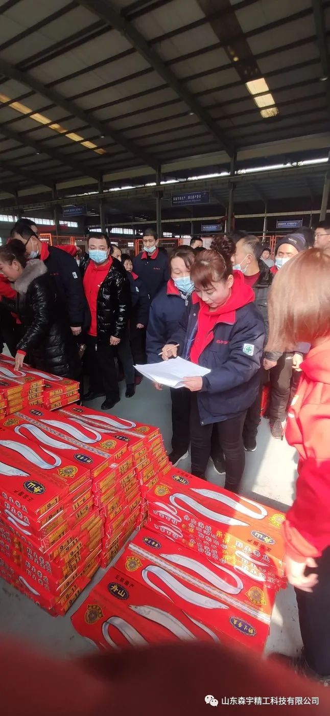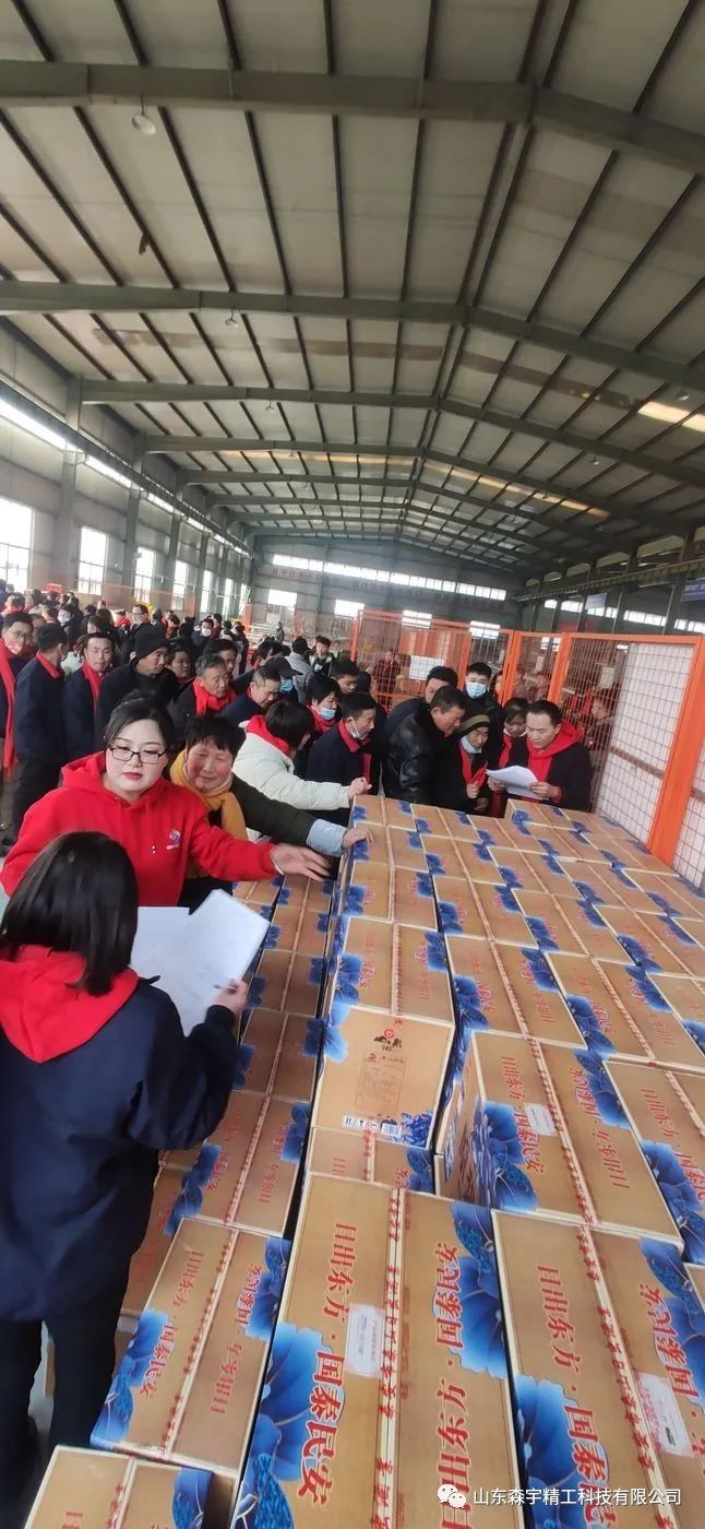 演出結束后,大家來到不銹鋼車間倉庫,福利發(fā)放現場猶如趕年集一般熱鬧。大家在歡聲笑語中,領到公司準備的多種福利,有:精美的泰山酒,滿屋飄香的紅富士大蘋果,整整齊齊、沉甸甸的東海大帶魚以及自家十斤現榨花生油!