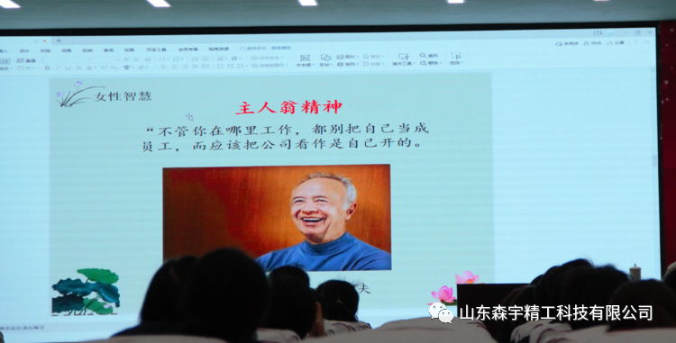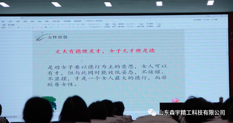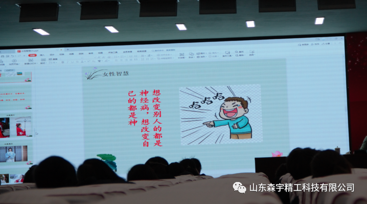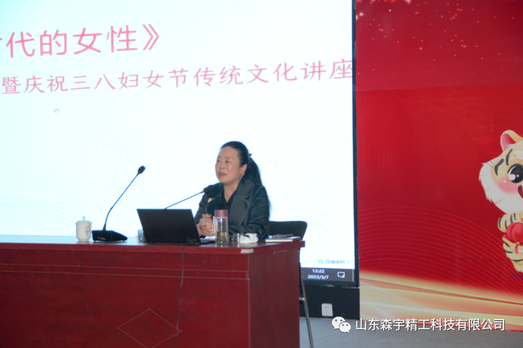 2022年3月7日,山東森宇精工科技有限公司在新辦公樓多動能廳舉辦了《智能時代的女性》傳統(tǒng)文化講座活動。慶祝“三八”國際婦女節(jié),傳承中華文化,弘揚傳統(tǒng)美德,營造文明祥和的社會氛圍。